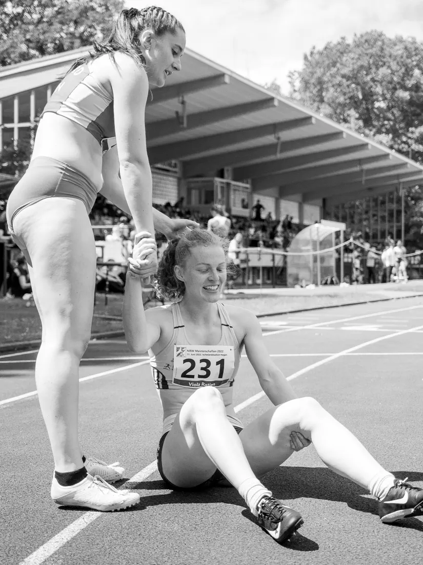 Laura GESCHE (LT DSHS Koeln #162), Frauke POEPPLOW (Werdener Turnerbund #299) und Julia GOTTSCHALK (Solinger LC #213) sichern sich die Plätze 6, 7 und 8 beim Frauen 400m Zeitlauf bei den Leichtathletik NRW-Meisterschaften 2022 im Ischelandstadion am 11.06.2022 in Hagen, Deutschland. (Foto von Julian Erbeling)Emelie WOLFF (LG Nord Berlin #133) hilft Viola RATJEN (TLV Germania Ueberruhr #231) nach einem Sturz im Auslaufbereich beim Frauen 400m Zeitlauf bei den Leichtathletik NRW-Meisterschaften 2022 im Ischelandstadion am 11.06.2022 in Hagen, Deutschland. (Foto von Julian Erbeling)Carina KEILMANN (USC Bochum #288) im Hochsprung Frauen Finale bei den Leichtathletik NRW-Meisterschaften 2022 im Ischelandstadion am 11.06.2022 in Hagen, Deutschland. (Foto von Julian Erbeling)Carina KEILMANN (USC Bochum #288) überspringt 1,72m zur NRW-Meisterschaft im Hochsprung Frauen Finale bei den Leichtathletik NRW-Meisterschaften 2022 im Ischelandstadion am 11.06.2022 in Hagen, Deutschland. (Foto von Julian Erbeling)Alina SCHUETZ (LG Niederrhein West #132) im Kugelstossen Frauen Vor/Endkampf bei den Leichtathletik NRW-Meisterschaften 2022 im Ischelandstadion am 11.06.2022 in Hagen, Deutschland. (Foto von Julian Erbeling)Pauline HILLEBRAND (TSV Bayer o4 Leverkusen #243) im Kugelstossen Frauen Vor/Endkampf bei den Leichtathletik NRW-Meisterschaften 2022 im Ischelandstadion am 11.06.2022 in Hagen, Deutschland. (Foto von Julian Erbeling)Lina HARMUTH (LT DSHS Koeln #165) im Diskuswurf Frauen Vor/Endkampf bei den Leichtathletik NRW-Meisterschaften 2022 im Ischelandstadion am 11.06.2022 in Hagen, Deutschland. (Foto von Julian Erbeling)