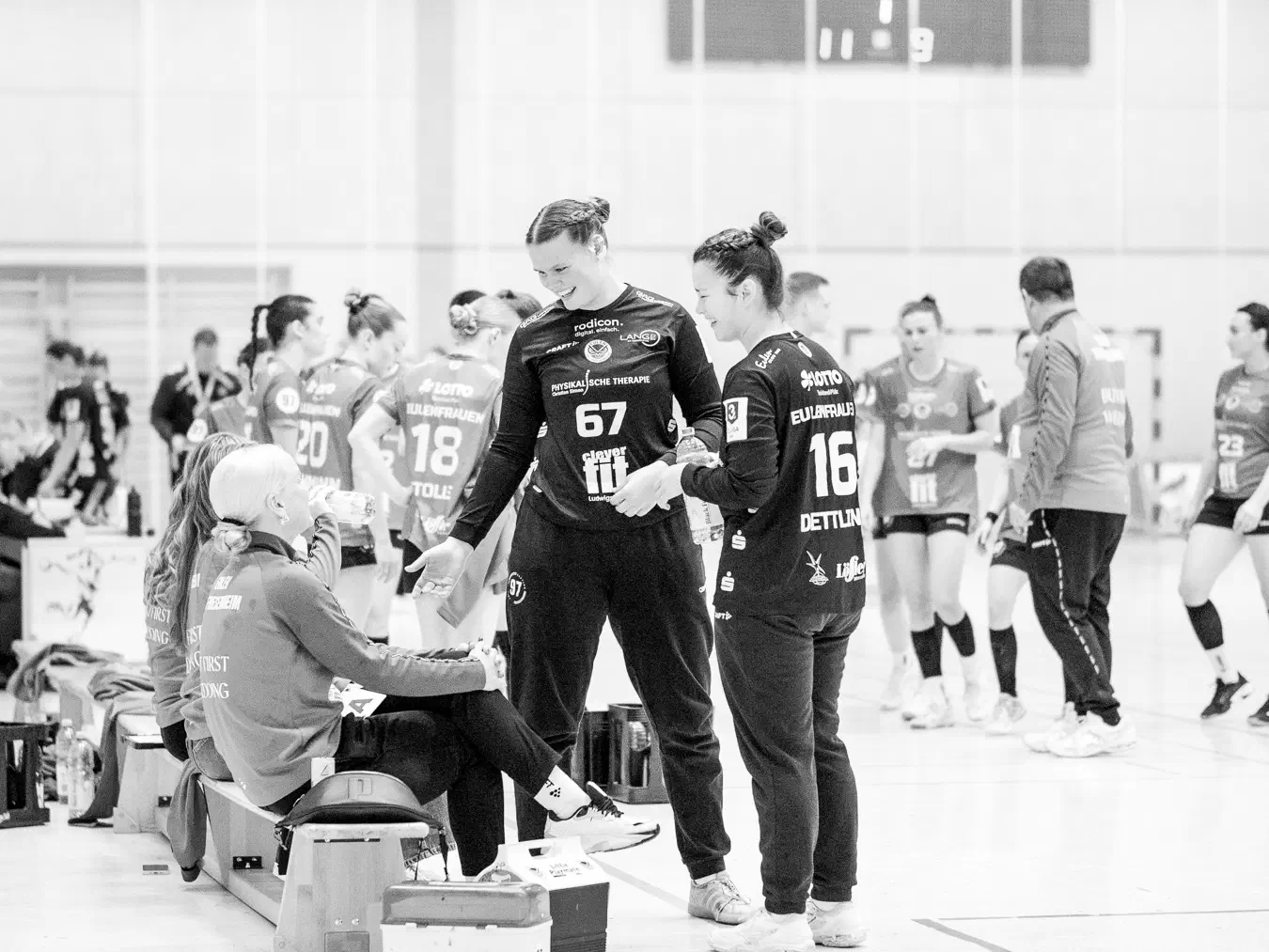 Dann allerdings wendet sich das Blatt, die Eulenfrauen kommen besser ins Spiel und gehen schließlich mit 7:4 in Führung. Vor allem Mona Kuczaty fällt auf Seite der Eulenfrauen auf, drei der sechs Anschlusstreffer gehen auf das Konto der Linksaußen.